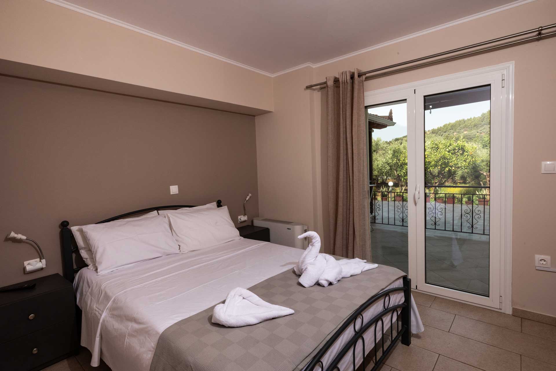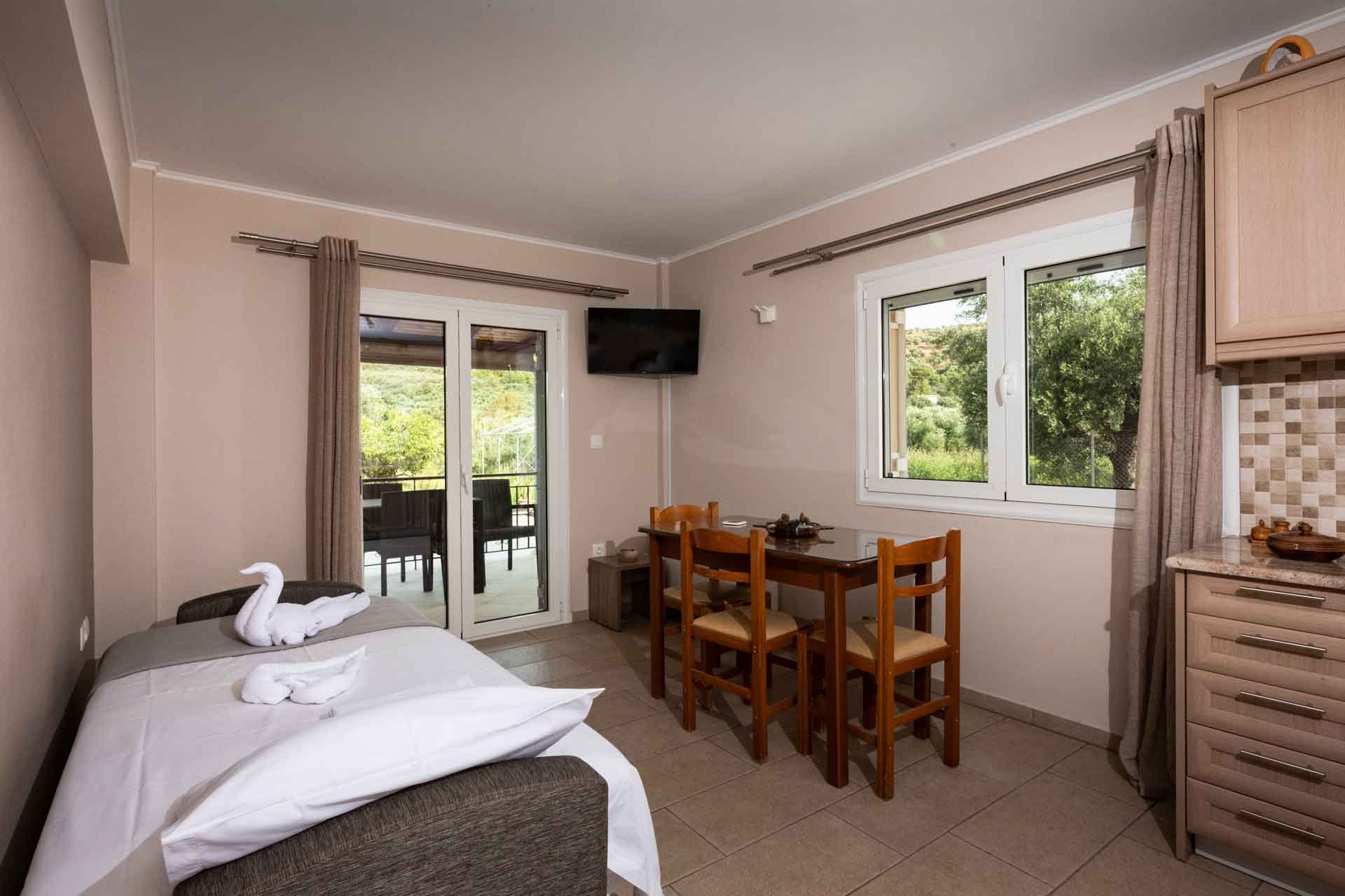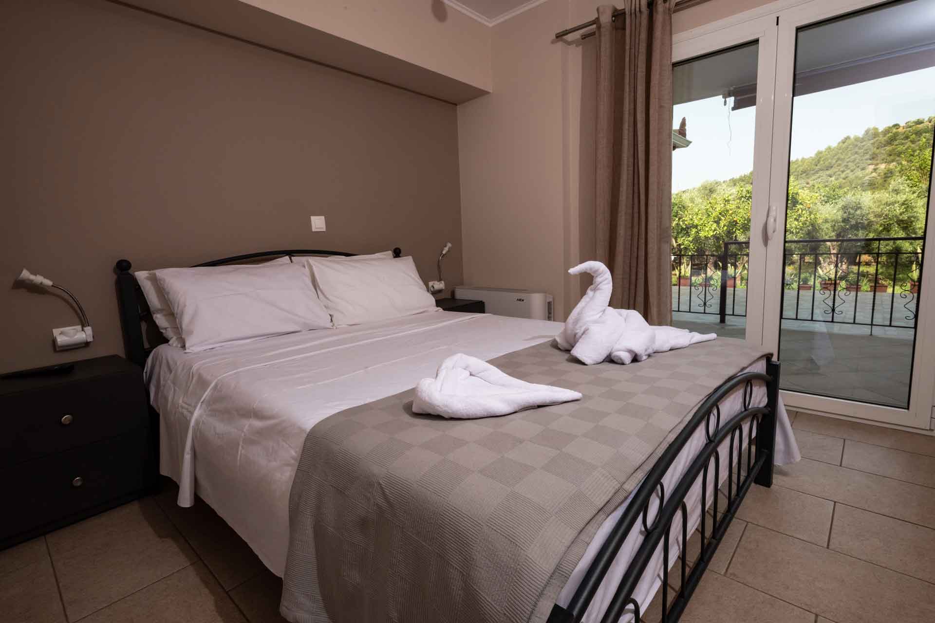 Ιδιωτική βεράντα με θεά τους ελαιώνες και τα αμπέλια της Ηλείας. Ελεύθερη πρόσβαση στον κήπο, ο οποίος προφέρετε για στιγμές ηρεμίας σε ένα μοναδικό φυσικό περιβάλλον.