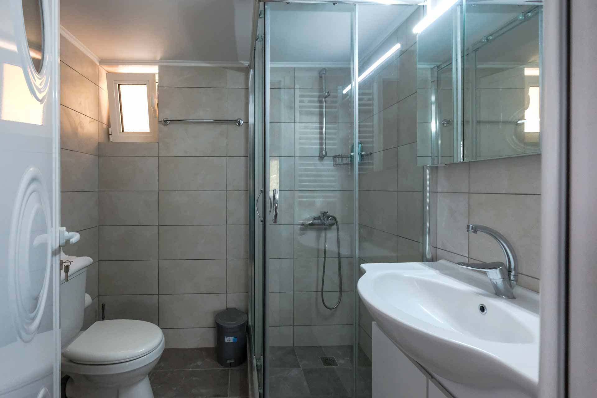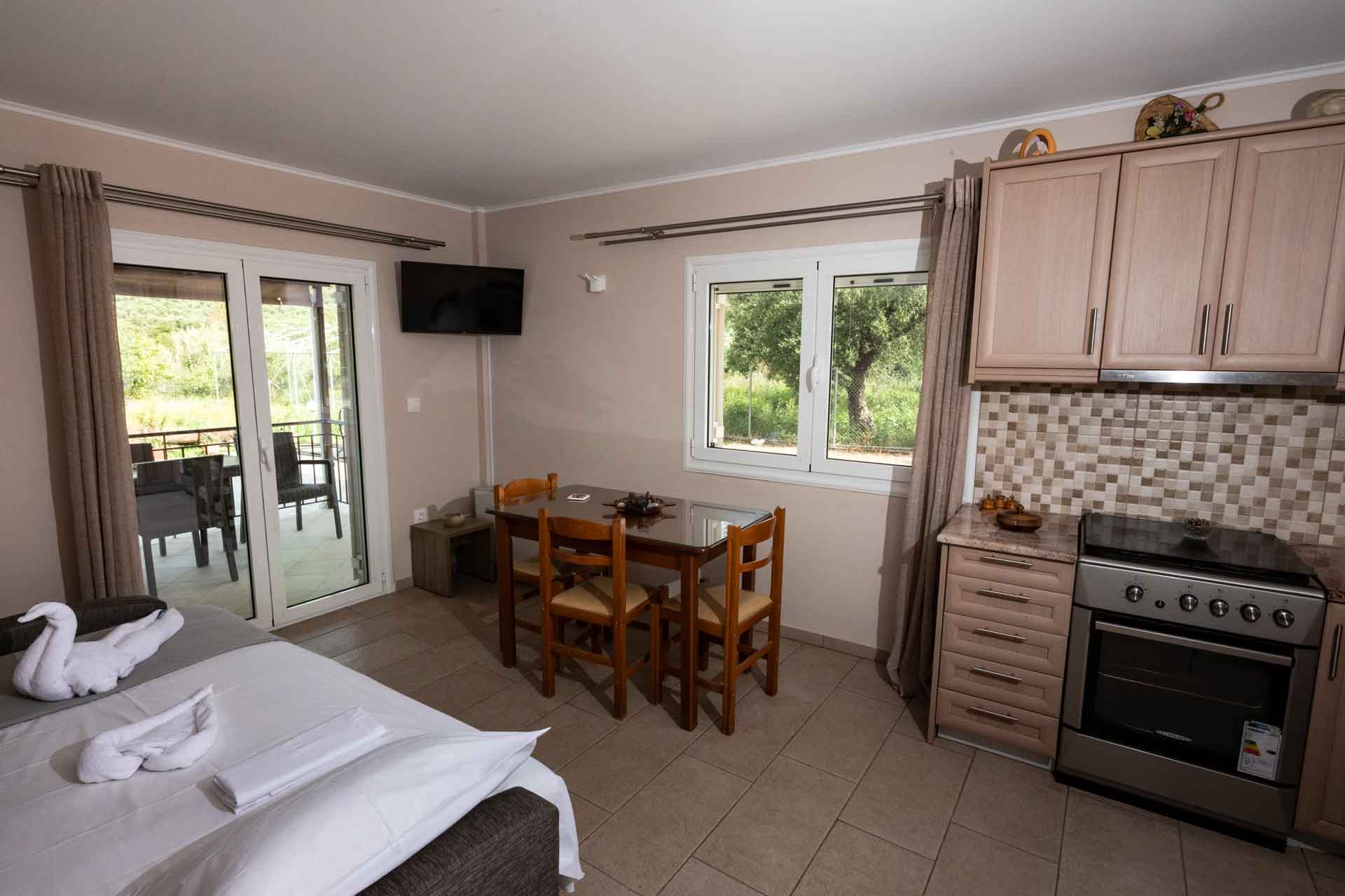 Διαμέρισμα 1 ιδανικό για ζευγάρια ή οικογένειες με ένα παιδί. Το διαμέρισμα διαθέτει ένα διπλό κρεβάτι και στο σαλόνι υπάρχει καναπές που γίνεται μονό κρεβάτι. Η κουζίνα είναι πλήρως εξοπλισμένη με φούρνο και οικογενειακό ψυγείο.